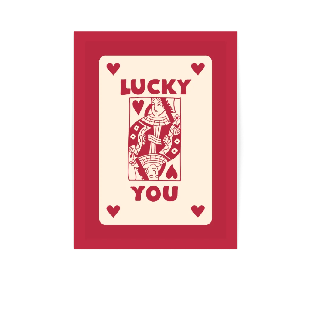 A playful take on the Queen of Hearts card, reimagined with warm vintage charm. The bold red and cream palette brings confident energy to any space, while the classic playing card illustration adds a touch of nostalgic whimsy. The message is clear and lighthearted, creating an inviting focal point that sparks conversation.